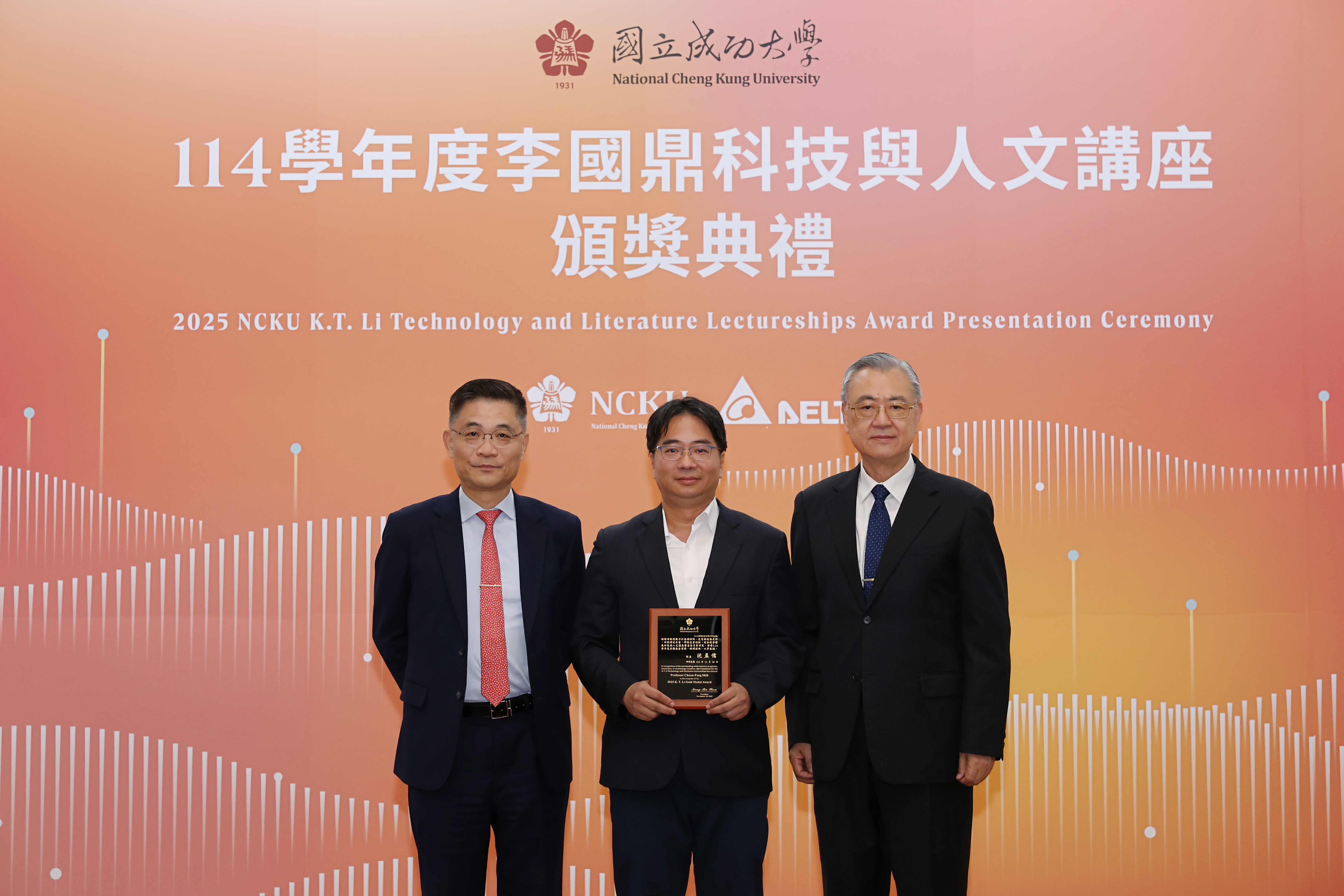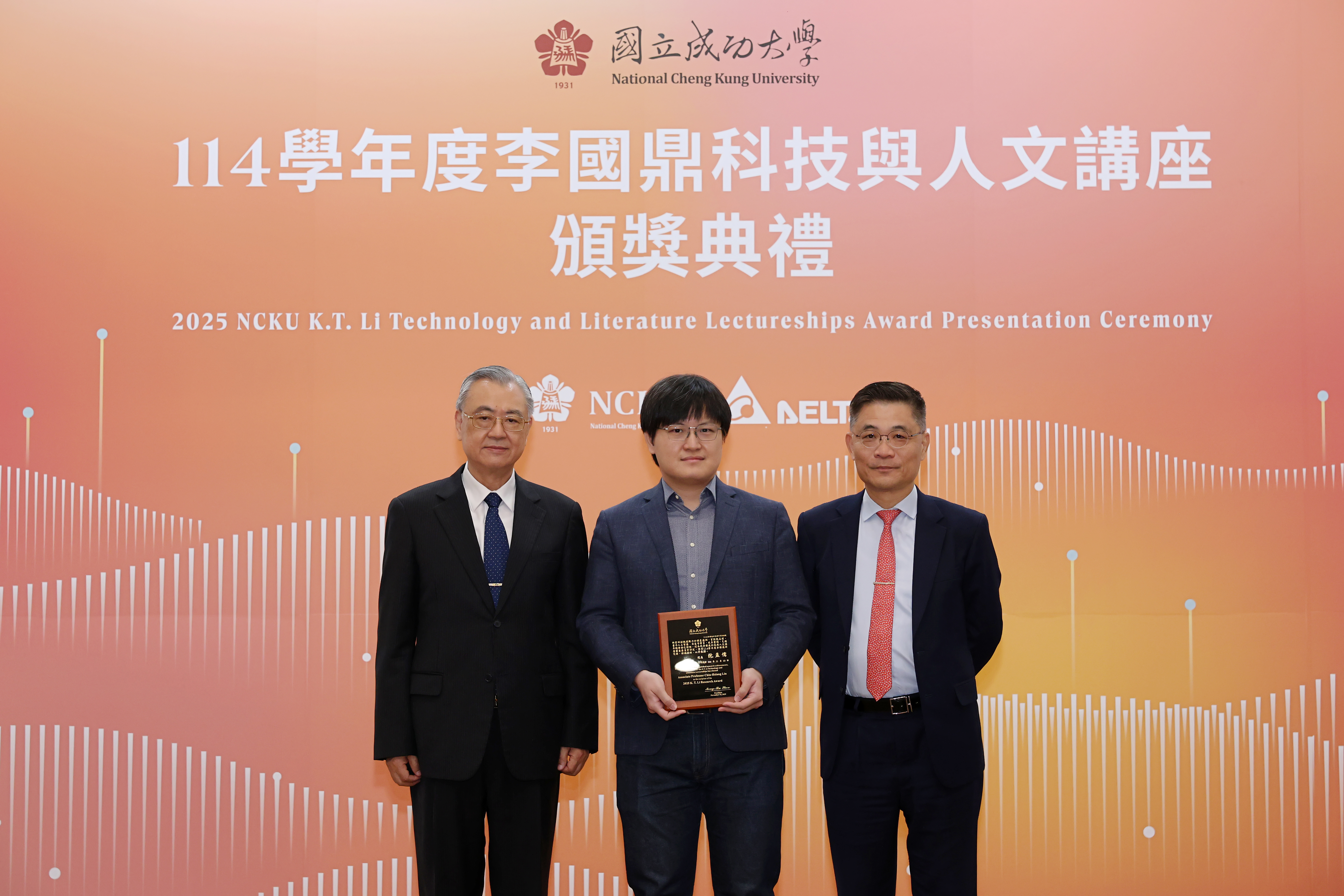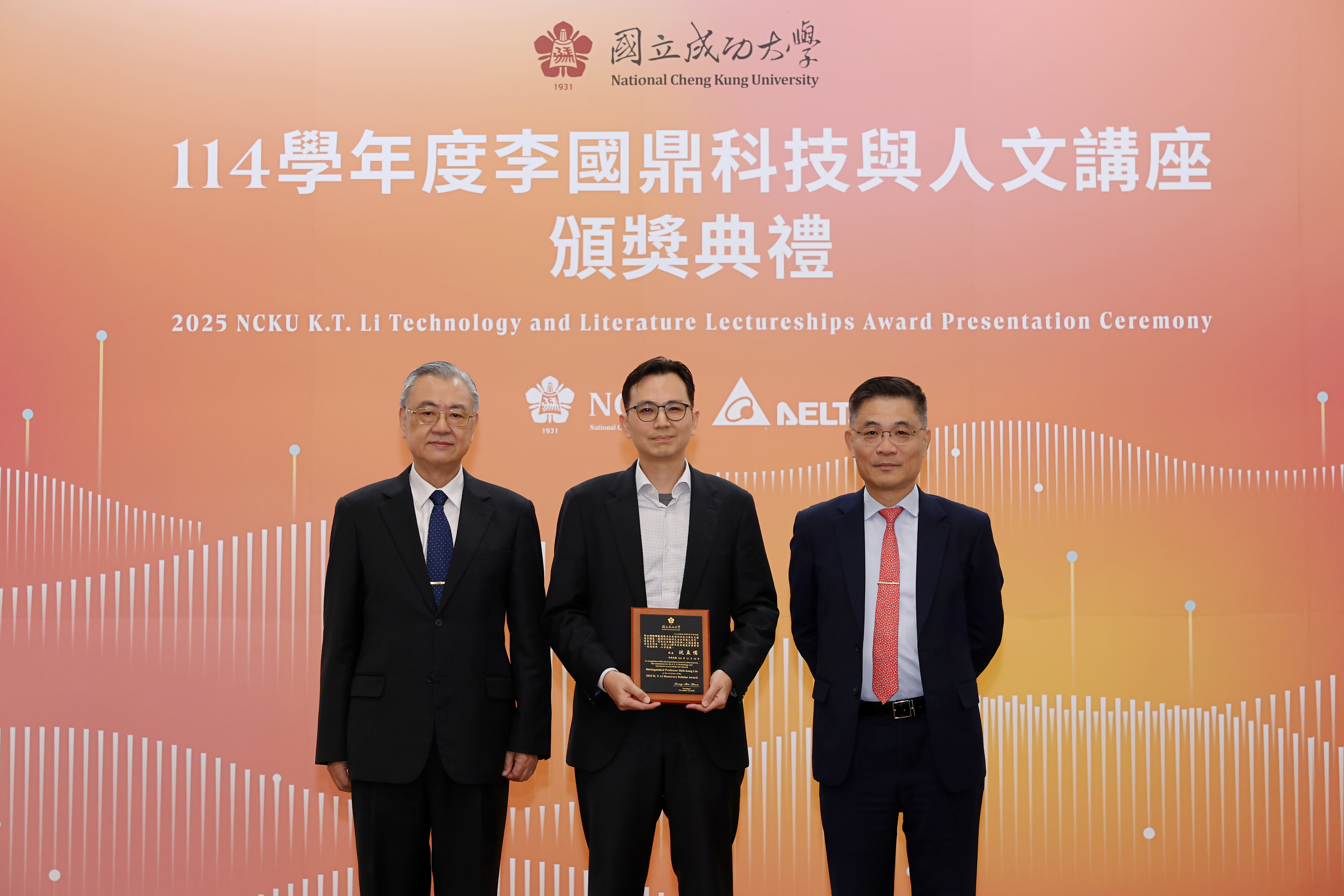國立成功大學 114 學年度「李國鼎科技與人文講座」今(10)日下午在成大成功校區格致堂舉行頒獎典禮,由成大校長沈孟儒及台達電子資深副總裁金壽豐共同表揚 8 位獲獎學者,分別獲頒「李國鼎榮譽學者」、「李國鼎研究獎」及「李國鼎金質獎」。今年 3 位獲頒「李國鼎榮譽學者」分別為:成大機械系羅裕龍講座教授、電機系王永和特聘教授與材料系林士剛特聘教授。獲頒「李國鼎研究獎」3 位:材料系鍾昇恆副教授、電機系林家祥教授及光電系吳品頡教授。獲頒「李國鼎金質獎」2 位:機械系鍾震桂特聘教授與電機系施權峰教授。